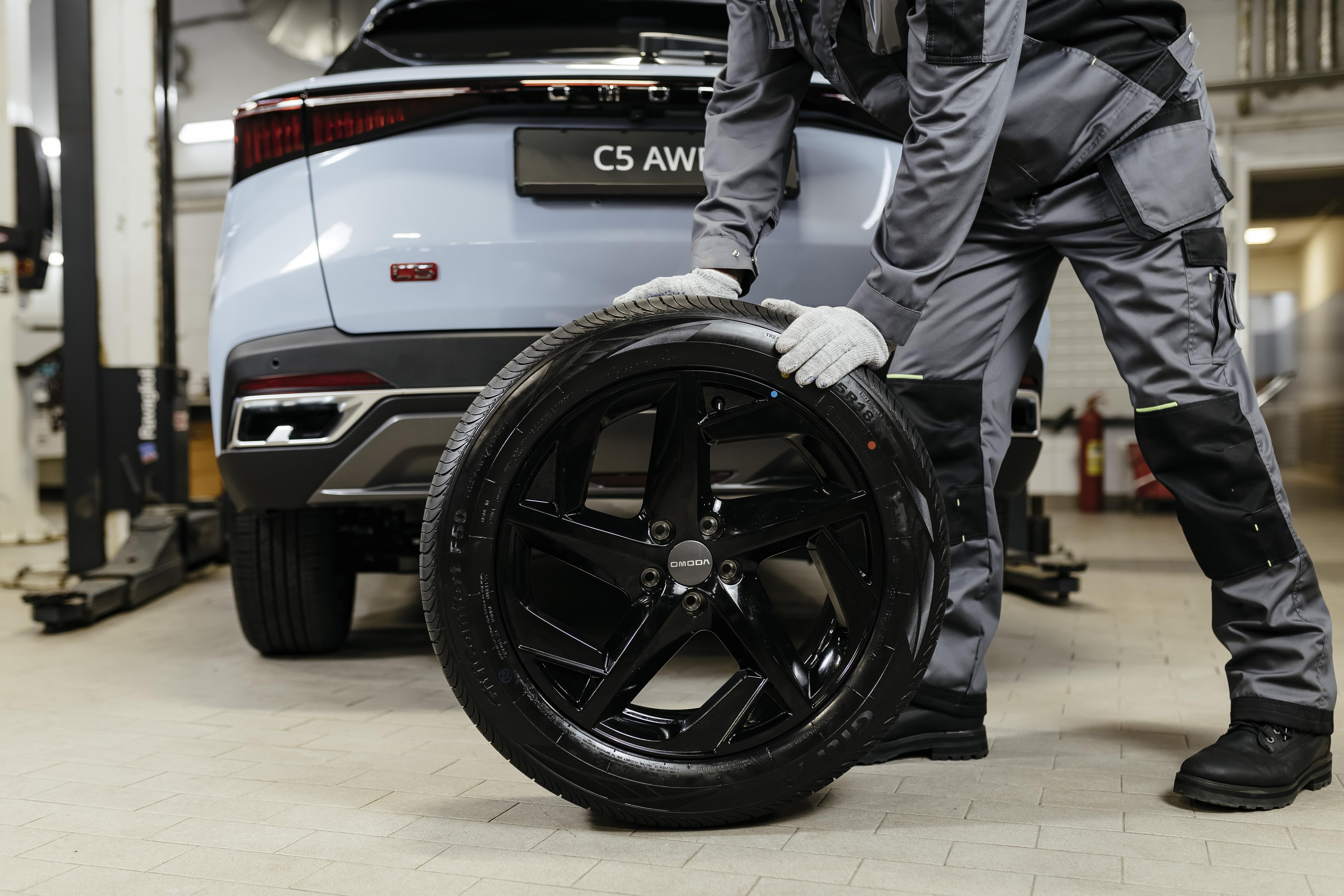 Приглашаем владельцев автомобилей OMODA на сезонный шиномонтаж. Перед процедурой сотрудники проводят техническую мойку автомобиля и отдельно - мойку колёс